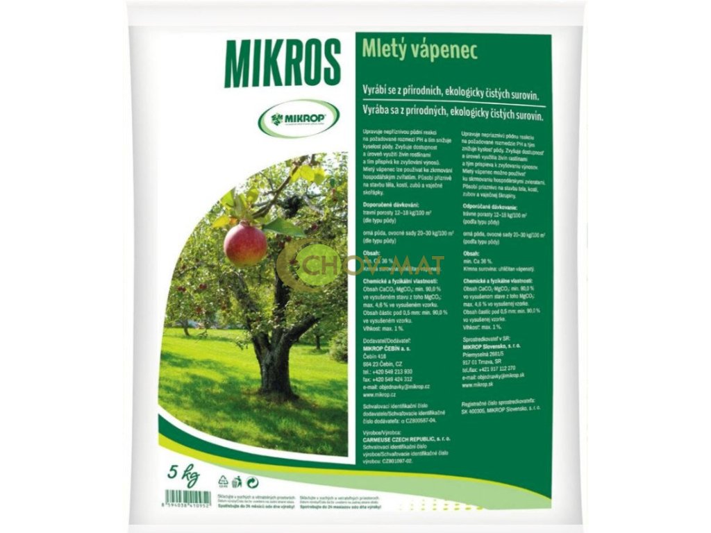 Mletý vápenec 5kg (kŕmne vápno) MIKROP/ (1kartón/ 3ks)