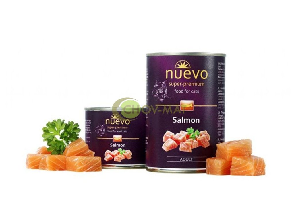 Nuevo Adult konzerva pre mačky s lososom. Jedinečné, krmivo s extra vysokým obsahom mäsa (71%), ktoré je doplnené vývarom s plnou chuťou . Losos s vysokým obsahom bielkovín a s potrebnými minerálmi predstavuje ideálny nutričné základ pre vašu mačku. Je prirodzene bohatý na mastné kyseliny omega-3 a omega-6. Nuevo Losos je vyvážená komplexný výživa so správnou úrovňou bielkovín, tukov, minerálov a vitamínov podporujúcich dlhý a aktívny život vašej mačky. Bez obilnín - ideálne pri obavách zo zníženej tolerancie obilnín. Vyrobené v Nemecku.
