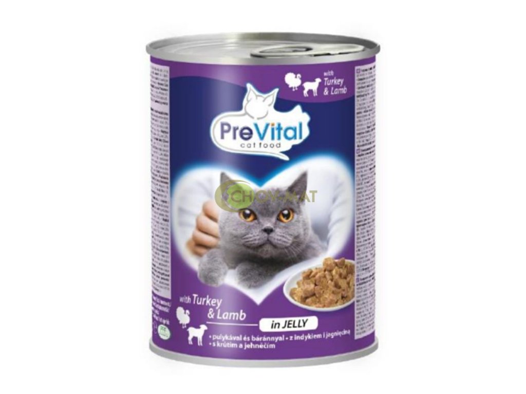 PREVITAL Cat konz. 415g s jahňacím a morkou v želé (12ks/ 1kartón)
