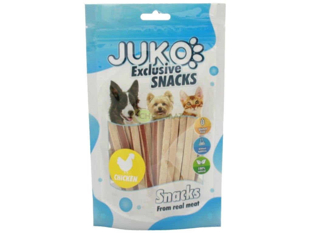 POPIS: Lahodné mäsové sandwich plátky z kuracieho mäsa pre psov každého plemena i veku. Vysoká kvalita použitých surovín zaručuje výraznú chuť a vôňu, ktorú si váš maznáčik zamiluje. 100% prírodný, bez lepku. Vrecko má praktické uzatváranie, maškrty tak zostanú dlhšie čerstvé a voňavé.
